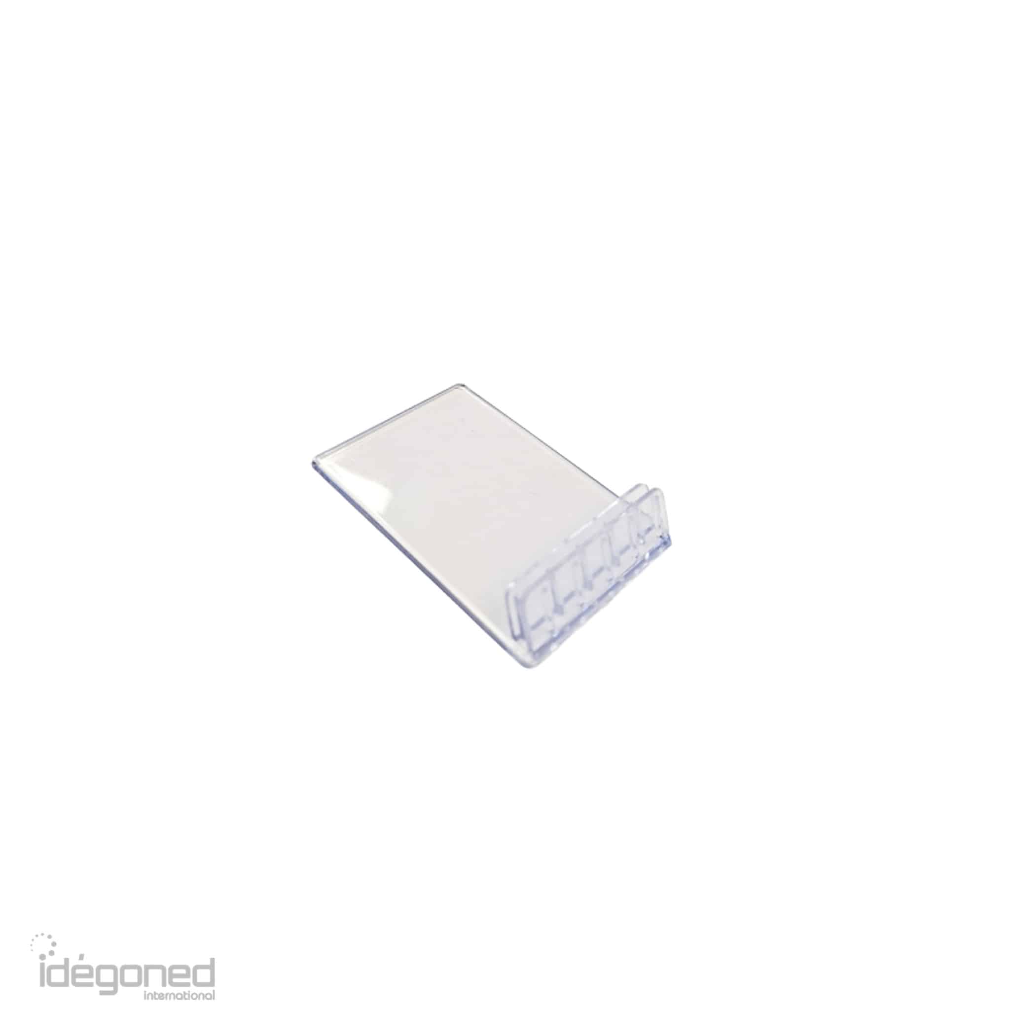Met dit kleine transparante (prijs)kaarthoudertje brengt u overzicht aan in bijvoorbeeld de vitrinekast.