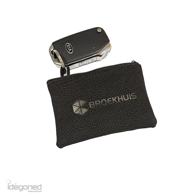 Met dit luxe sleuteltasje heeft u een mooi geschenk voor uw klant in handen. Uw logo of tekst wordt in blinddruk (verdiept in het materiaal) aangebracht voor een slijtvast resultaat.