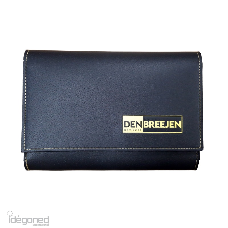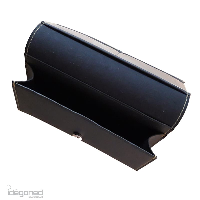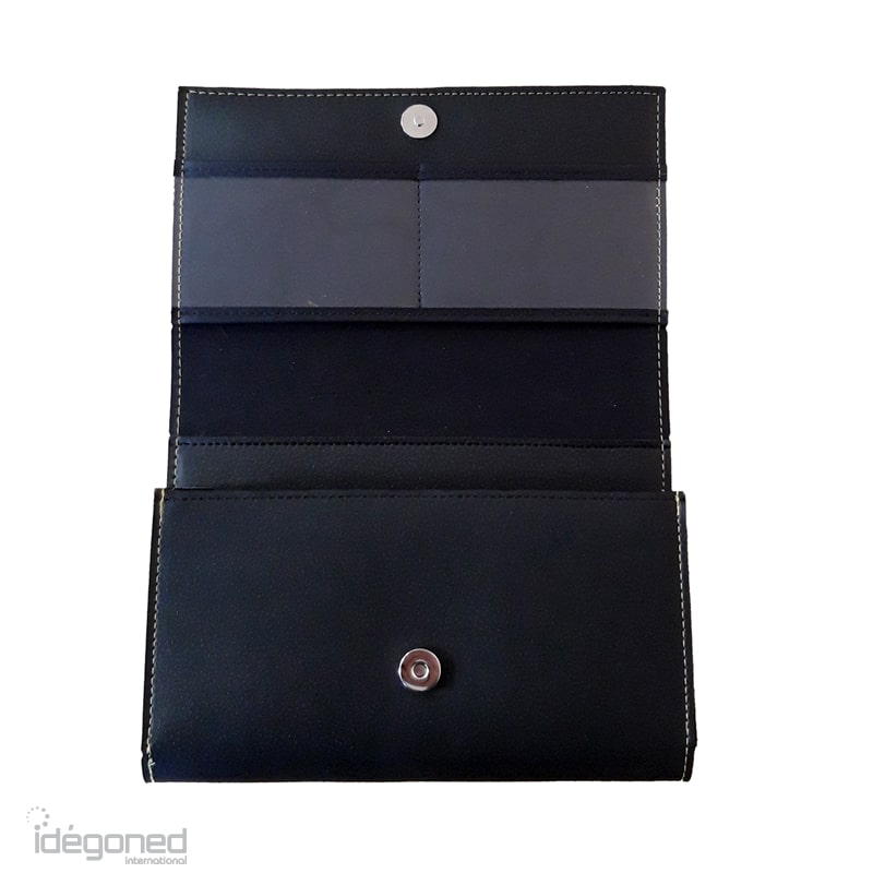 Zwarte kunstleren auto/documententas voorzien van een drukknoop.