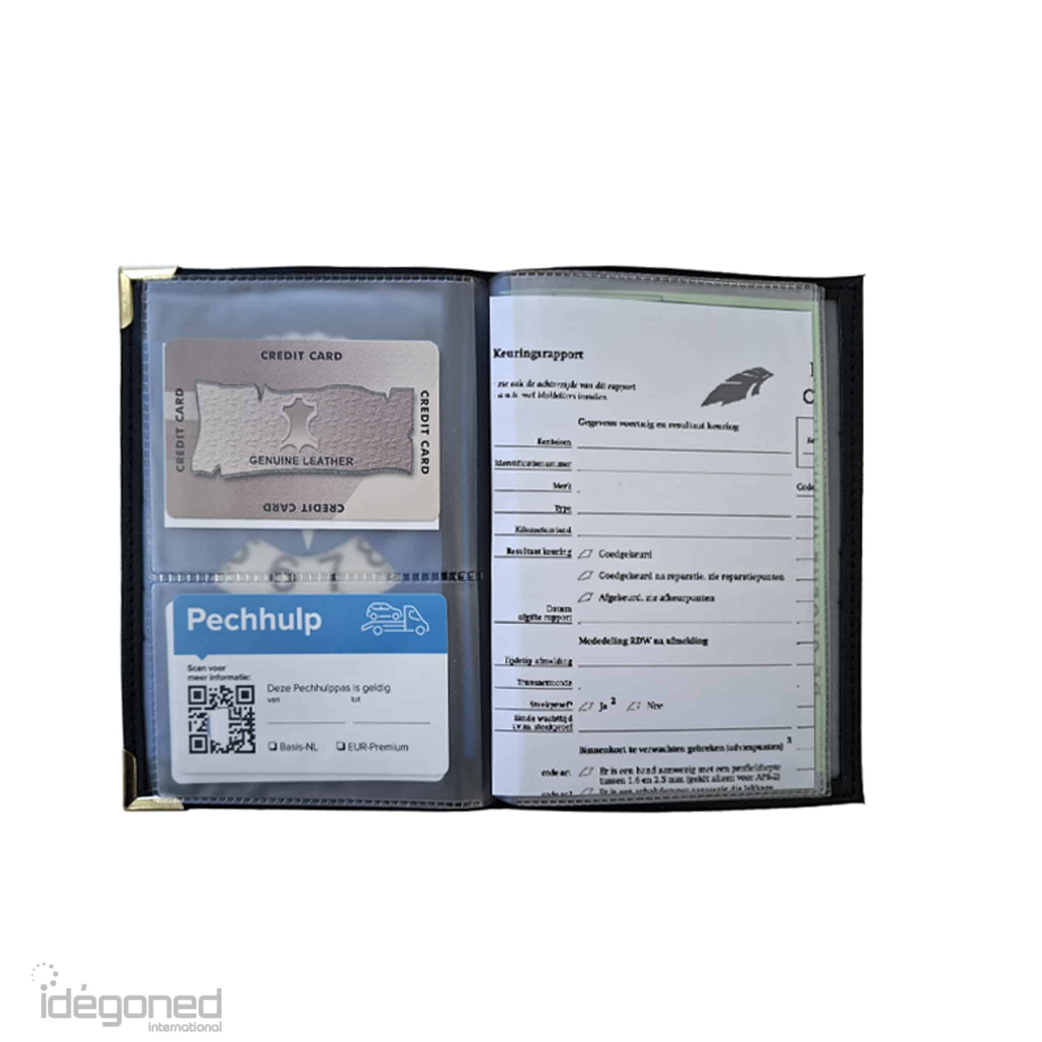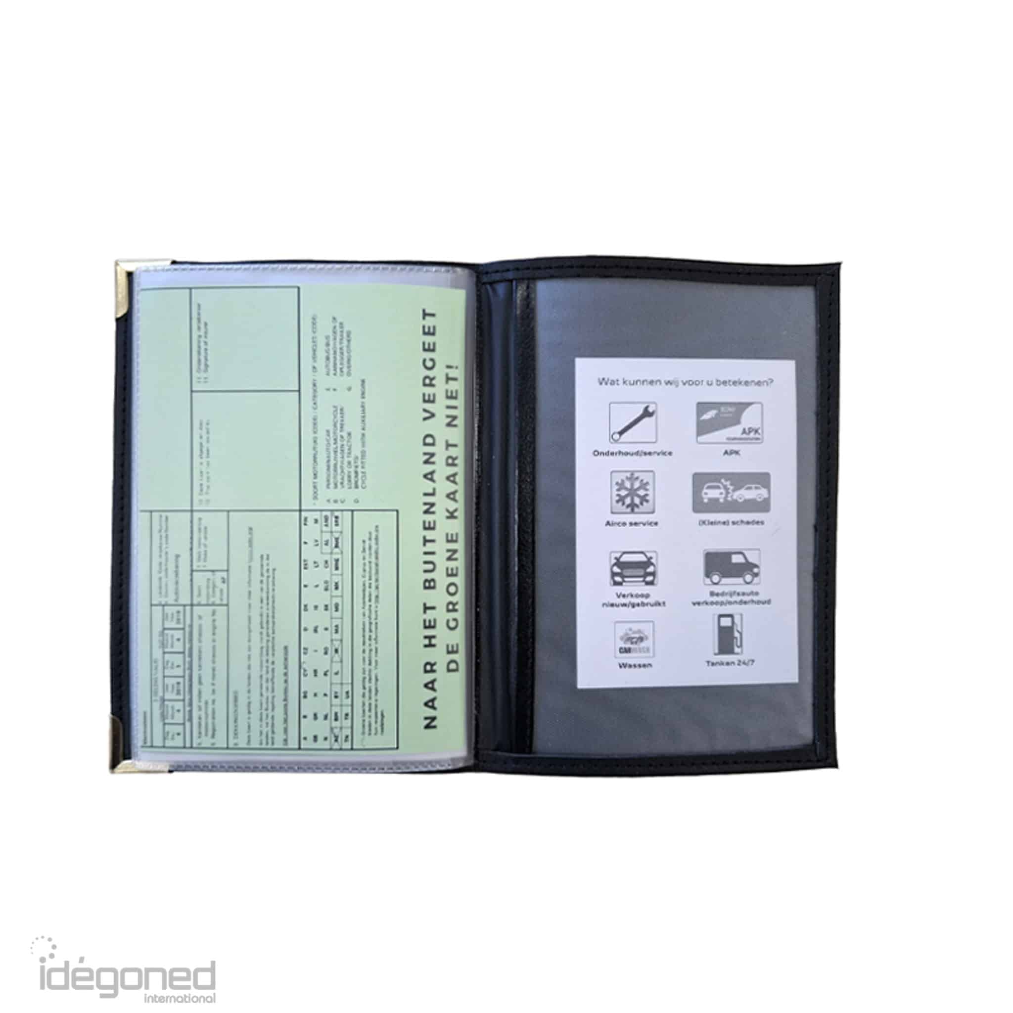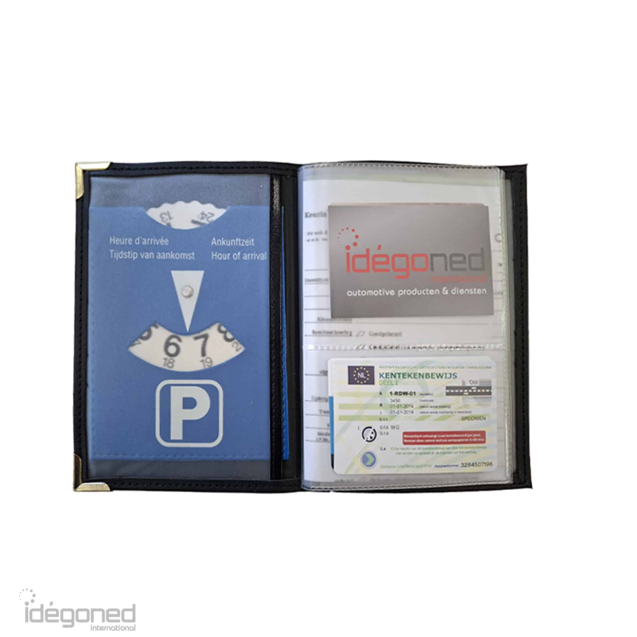 Dit mapje heeft veel verschillende opbergvakjes voor autopapieren, zoals rijbewijs, kentekenbewijs, afsprakenkaartje, pechhulppas enz.