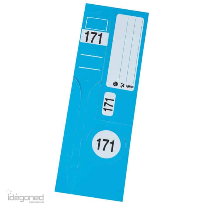 De genummerde ID Labels zijn verkrijgbaar in 3 kleuren, rood geel en blauw. Alle labels zijn voorzien van duidelijke zwarte nummering.